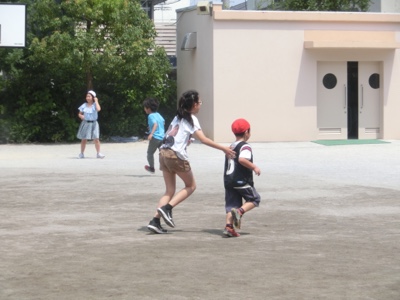 遊び場所は予め割り当てられています。校庭では鬼ごっこ系の遊びをしていました。