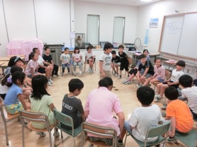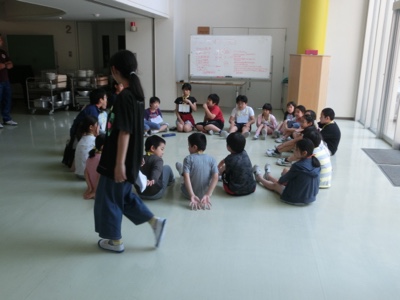 この班は、古典的な遊び「ハンカチ落とし」をしていました。学年を超えた縦のつながりを作るために、この「たてわり班活動」が今後も行われます。