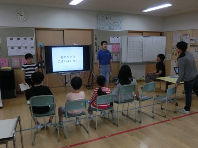 こだま学級の教室では、先日の天沼まつりの振り返りをしていました。お店で自分の役割ができたのかどうかを、画面に合わせて堂々と発表していました。