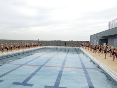 その「地獄のシャワー」です。1年生の初プールはここでタイムアップ。実際に入水するのは次回になりました。