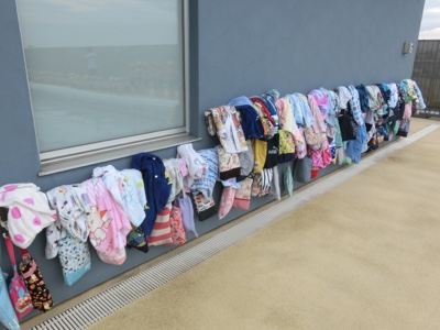 学年の人数が多いので、タオル掛けがいっぱいになり、掛けるのに手間取りました。