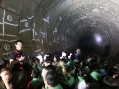 地下は真っ暗なので、施設の方がライトで照らしてくれました。