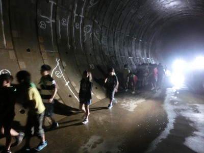環七通りの真下まで歩いていきます。大雨の時は、この中を水が流れていく仕組みです。