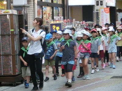 続いて、阿佐ヶ谷パールセンター商店街の見学です。バスを降りて商店街に入っていきます。
