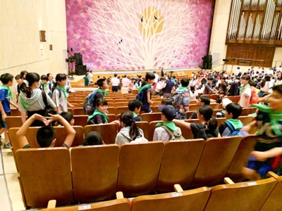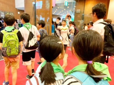 新宿三丁目駅から新宿文化センターまで歩きました。20校近い小学校が集まっていました。誘導係としてAWのみなさんがサポートしてくれています。