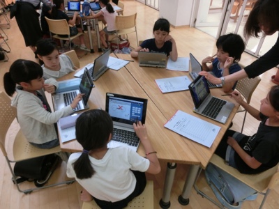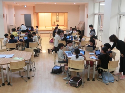 学校支援本部(AW)が主催する「あまぬまハッピィスタディジュニア」。3年生を対象に、国語と算数の補充学習をタブレットを使って行う放課後活動です。