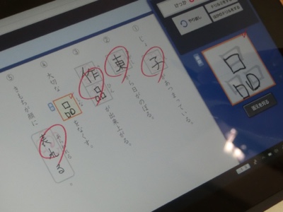 漢字の書き取りで自動採点してもらえます。「品」という字は字形が崩れていたのでアプリは丸にしてくれませんでした。