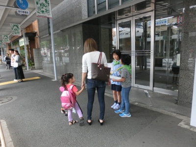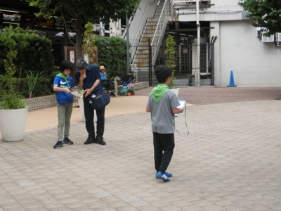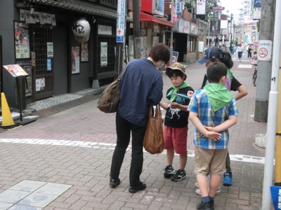 今日は5年生のAKP(天沼会社経営プロジェクト)で市場調査をする日です。5年生4クラスが4回に分けて荻窪駅周辺に繰り出しました。ここはことぶき通り商店街です。少し離れたところでAWのみなさんや保護者の方が見守っています。