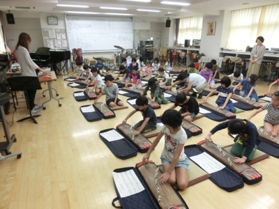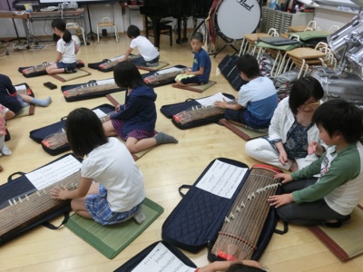 みんないい姿勢でお箏に向き合っています。4年生でまた体験するので、それまで覚えていられるといいですね。