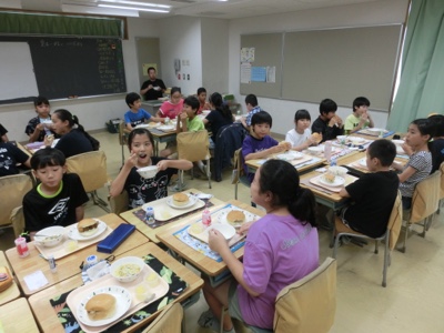 食べたい方を選んで食べられるのはとても嬉しいですが、2種類作らなければいけない給食室は大変だったようです。ちなみに、この5-1では、チキンバーガー対フィッシュバーガーの比率は26:1でした。学校全体では、560:130だったそうです。