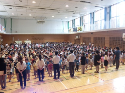 原稿を見ずに、1学期の反省と2学期への決意を一人2分以上語りました。話す子どもたちも立派ですが、聞いている子どもたちも良い姿勢で聞いていて立派でした。
