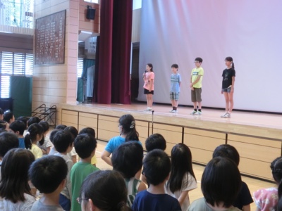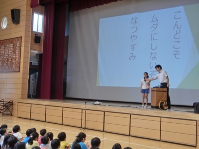 6年生が作った標語をいくつか発表して、夏休みに気をつけることを伝えました。