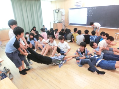 最終日にお楽しみ会をやっているクラスもたくさんありました。これは6-2です。フルーツバスケットをしています。