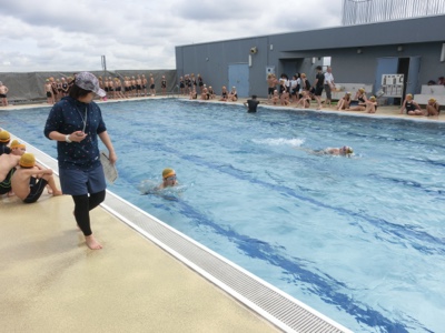最後の日になってようやく暑くなりましたね。5年生はプールに入っていました。