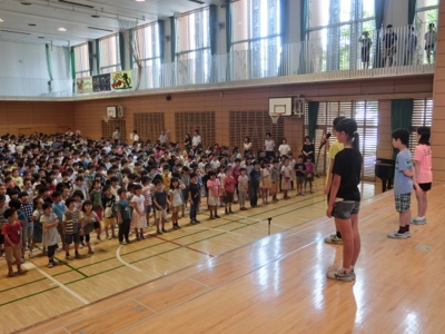 そして3時間目は終業式。私からは、1学期にがんばったことがたくさんありますね、という話と、夏休みにいろいろな体験をしてくださいという話をしました。