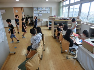 4-3は、夏休みの宿題プリントを綴じていました。休みの間にしっかりと復習しておきましょう。