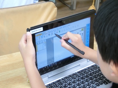 2-2はタブレットで夏を感じる絵を描いていました。プレゼンテーションソフト活用の第一歩です。
