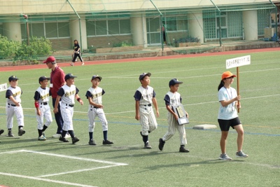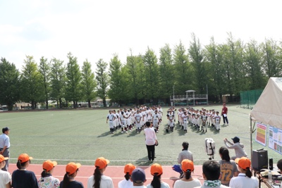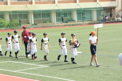 開会式です。天沼少年野球クラブ高学年チームの入場。