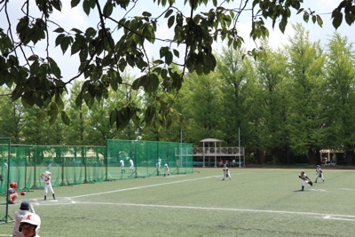 今日は日大二高のグラウンドで天沼地域少年野球大会がありました。この近隣の小学生と中学生の野球チームが出場する大会です。