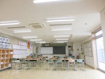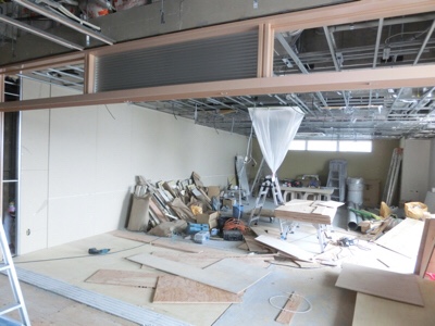 3階の工事現場を覗いてみると、教室入口の扉の枠が入っていました。