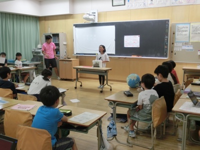 4-1でも一人ずつ自由研究の発表をしていました。来週、どのクラスも教室前に展示されます。色々なアイデアや努力が見られ、毎年一つ一つ見るのが楽しみです。