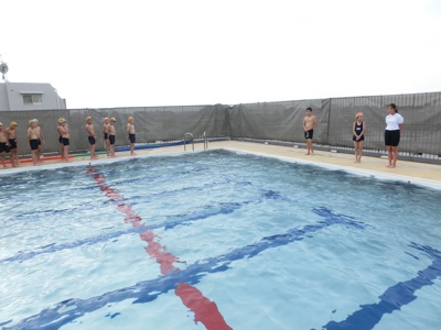 6年生は、このプールで泳ぐのも今日が最後です。6年間お世話になりました、という気持ちを込めてプールに一礼し、プール納めを終えました。