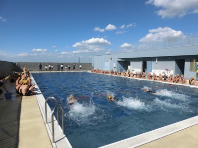 プールサイドに声援が響いていました。