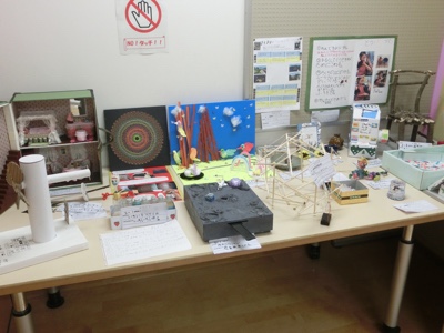 教室前やエレベーターホールに、夏休みの自由研究の作品が展示されています。それぞれ、興味関心を持った分野に取り組んでいます。これは4年生のコーナーです。