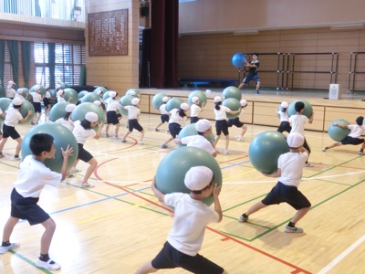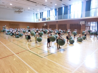 3年生の表現種目も練習が進んでいます。Gボールを使った演技になるようです。