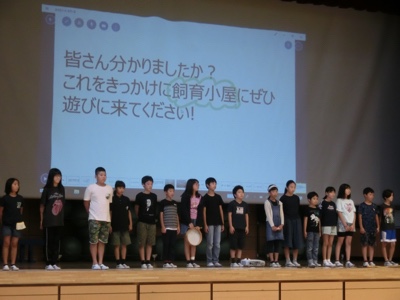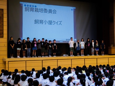 次は飼育栽培委員会。こちらは「飼育小屋クイズ」です。天沼小の動物についての問題です。