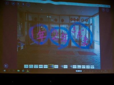 ちょっと見にくいのですが、昇降口に並ぶ場所を守りましょう、ということで昇降口の写真に学年を示していました。