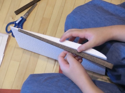 発泡スチロールの断面が、揚力を生み出す形になっていることがわかります。