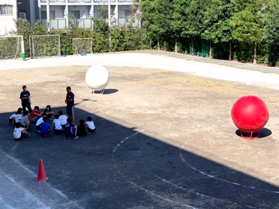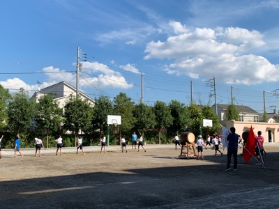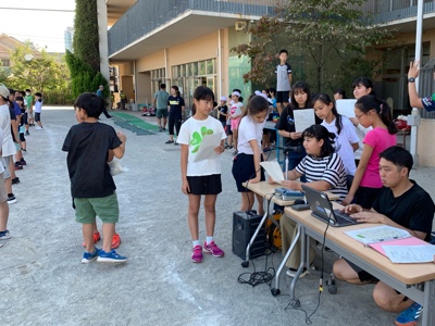 校庭でも準備や練習をしています。これは「全校競技係」が競技の段取りを確認しているところです。