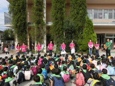 ピンク色のシャツを着た学校支援本部(AW)のみなさんが8人もお手伝いに来てくれました。