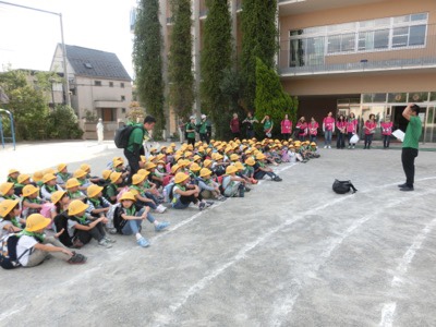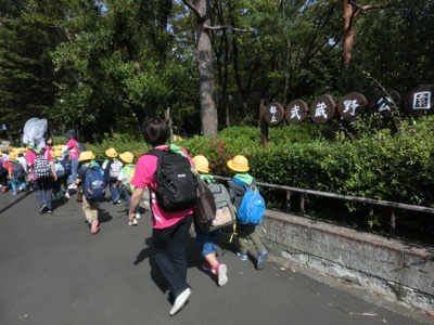 今日は1年生が生活科見学で武蔵野公園に出かけます。いい天気ですね。