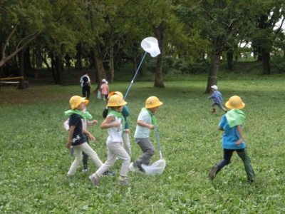 さっそく虫探しが始まりました。チョウやトンボ、コオロギなど、いろいろな虫が見つかりました。