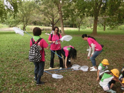虫取りや遊びが終わって、捕虫網などの道具をAWのみなさんが片付けてくれました。見守りやお手伝いなど、本当にありがとうございました。