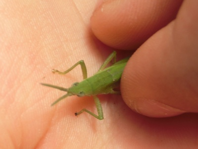 バッタの仲間。虫が見つかると子どもたちは大喜びで追いかけていました。