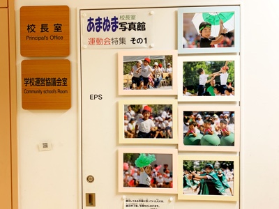 今年も、校長室と放送室の間に「あまぬま校長室写真館」を開設しました。私が運動会で撮った写真を貼ってあるだけなのですが、学校にお越しの際はちょっと覗いてみてください。今は「その1」を展示しています。展示が終わったら、写っているお子さんに写真を差し上げますのでお申し出くださいね。