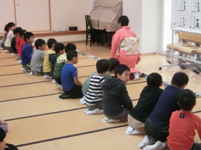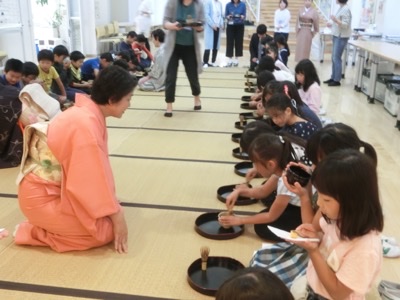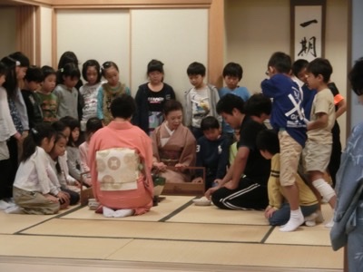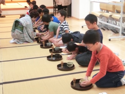 地域の茶道の先生が、子どもたちに茶道を体験させてくださっていました。天沼小では、全ての子どもたちが茶道体験をすることができます。