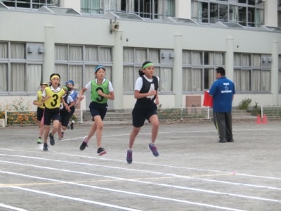 天沼小は黄緑のハチマキと黒のゼッケンです。