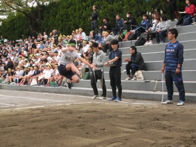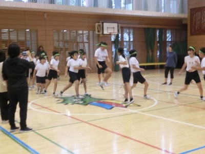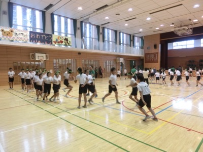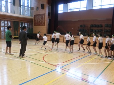 明日も天候の回復が見込めないため、延期ではなく中止になってしまいました。学校に戻り、やるはずだった長縄をアリーナで計測することにしました。これは6-1です。