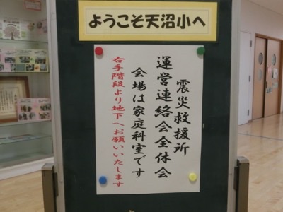 今日は「天沼小学校震災救援所運営連絡会」が開催されました。大きな震災が起きた時、