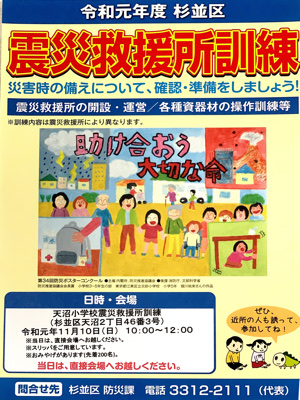 学校が避難所になるような災害が起きないのが一番ですが、地域のみなさんが協力し合って災害時のための準備をしていることを、ぜひ知っていただきたいと思います。11月10日の訓練にもどうぞご参加ください。