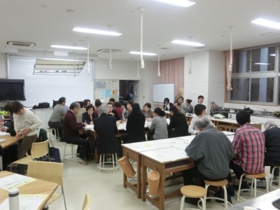 家庭科室にたくさんの地域の方々が集まって話し合いました。今日は、11月10日に実施される防災訓練について打ち合わせをしました。