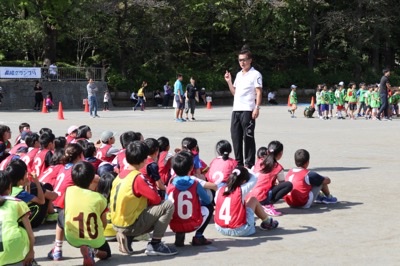 「かけっこ教室」は、事前にたくさんの申し込みの中から抽選で当選した200名が、元オリンピアンの400m走の選手から指導を受けます。