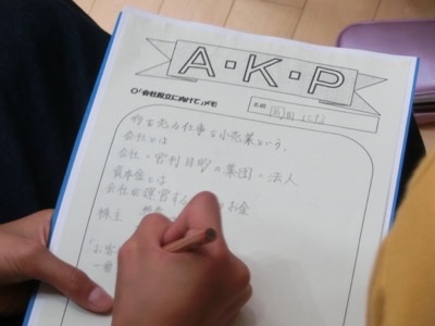 会社には、木の根っこにあたる「企業理念」というものがあって、それが会社経営の全ての基盤になっているというお話でした。5年生がAKPで立ち上げる会社は、どんな企業理念を掲げるのでしょうか。今後の展開が楽しみです。