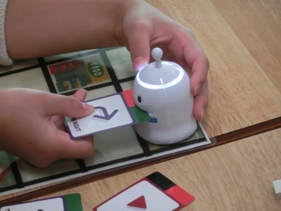 できあがったプログラムをカードを介してロボットに入力していきます。