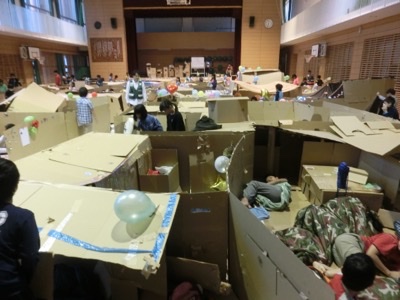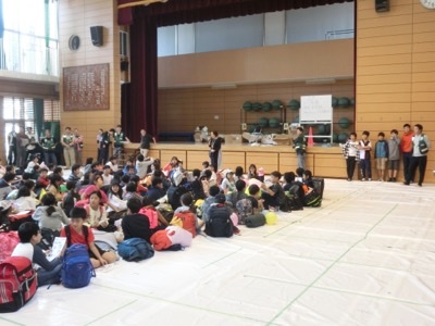 閉会式では、校長、PTA会長!学校支援本部、おやじの会からそれぞれ、ダンボールハウスの仕上がりが良かったグループに賞が贈られました。