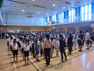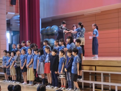 2019-11-05 火曜日だけど全校朝会 連休明けなので、火曜日の朝の全校朝会でした。一昨日の朝までダンボールハウスが並んでいたアリーナに子どもたちが整列しました。 今朝は、先日の長縄グランプリ5年生の部で2位になったチームの表彰をしました。みんな、よくがんばったね。 Home › 5年 › 火曜日だけど全校朝会 関連記事 1学期最後の児童集会 7月の委員会活動 クラブ紹介 ICT授業の視察 (2~6年)始業式 天小DEわくわくお泊まりキャンプ2日目 音楽会の練習が続いています